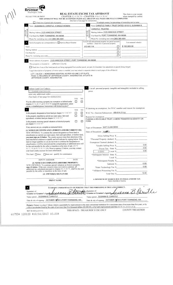 | Mailing Address: | 31 CENTER RD CHIMACUM, WA 98325-8780 | % Ownership: | 100.0000000000% |