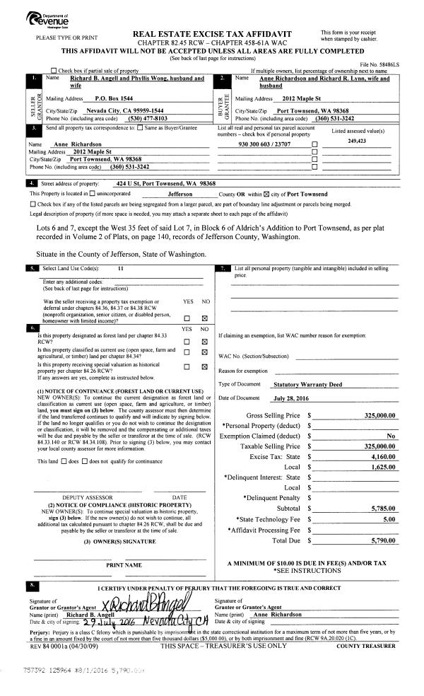 | Property ID: | 26572 | Abbreviated Legal Description: | CLARK'S 1ST TO CHIMACUM BLK 2, LTS 3 & 4(LS S10') ENLG BY TX 76 LESS TAX 77 W/PTN VAC RUSSELL ST ADJ AND W/PTN VAC BROADWAY AVE ADJ |