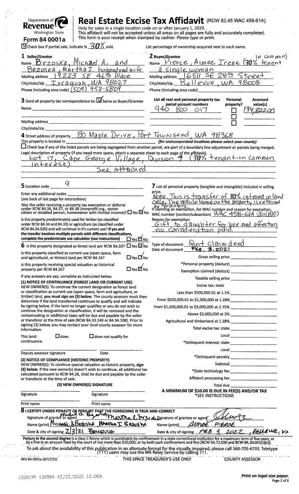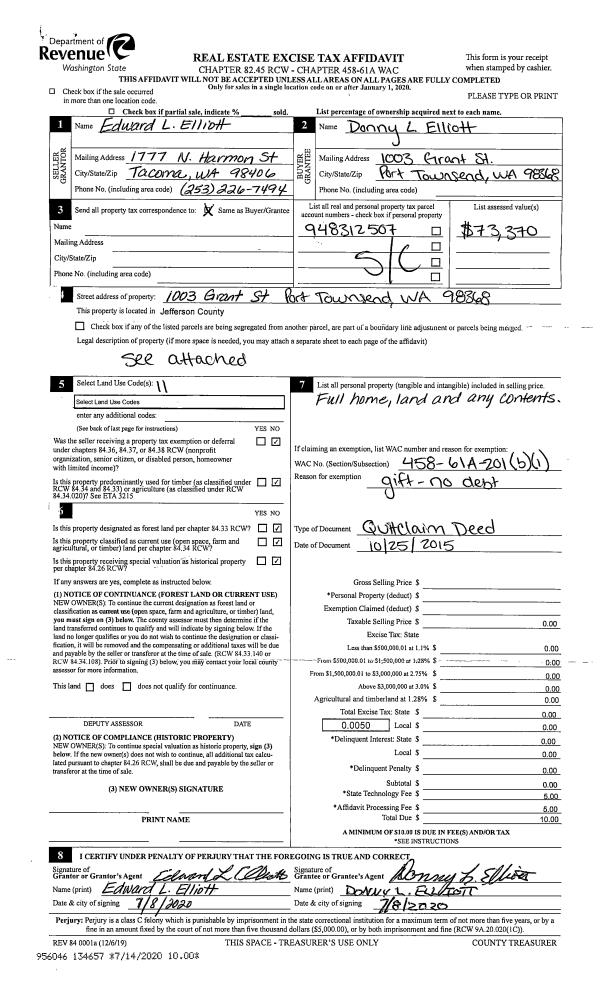 | Mailing Address: | 2529 GISE ST PORT TOWNSEND, WA 98368-7115 | % Ownership: | 100.0000000000% |