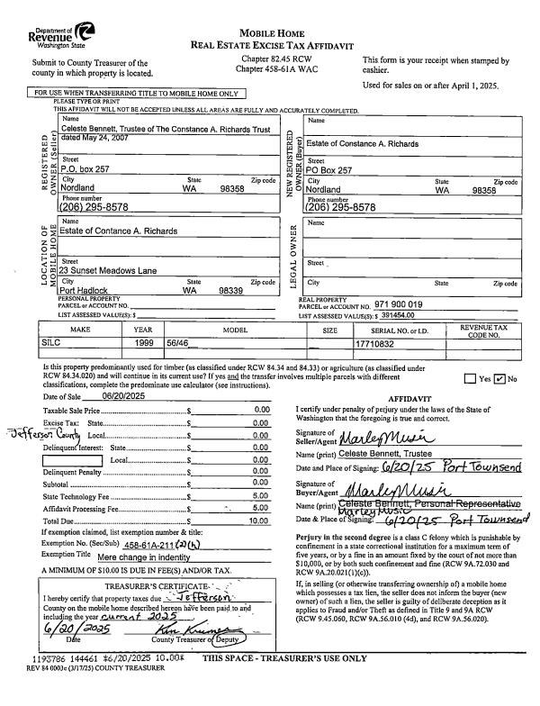 | Mailing Address: | MASHELL A CHAPMAN 1910 EDDY ST PORT TOWNSEND, WA 98368-7414 | % Ownership: | 100.0000000000% |