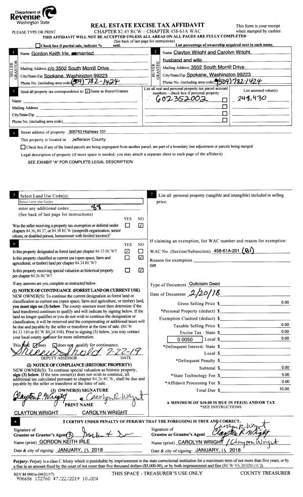 | Mailing Address: | 373 CRUTCHER RD PORT TOWNSEND, WA 98368-9629 | % Ownership: | 100.0000000000% |
