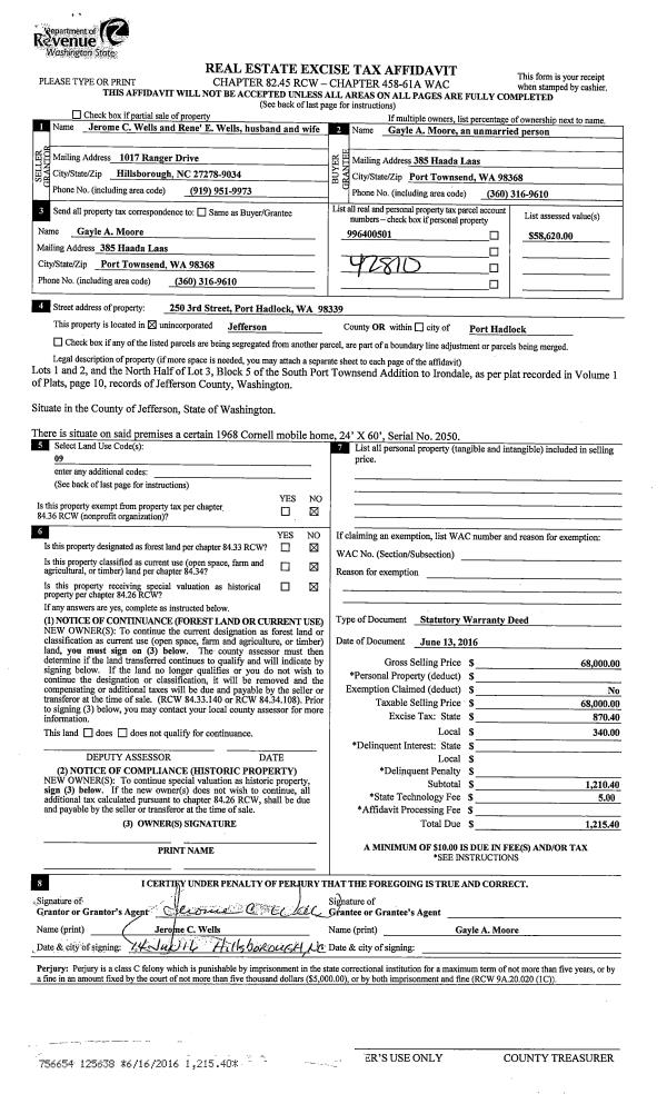 | Mailing Address: | 61 ANDERSON ST PORT HADLOCK, WA 98339-9632 | % Ownership: | 100.0000000000% |