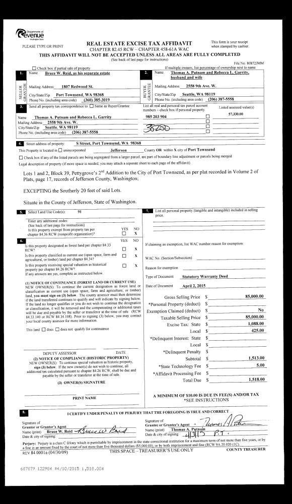 | Mailing Address: | 420 FREDERICKS ST PORT TOWNSEND, WA 98368-8715 | % Ownership: | 100.0000000000% |