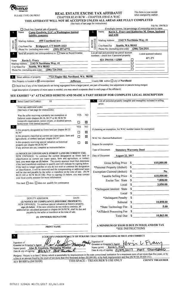 | Mailing Address: | 33 N PALMER DR PORT TOWNSEND, WA 98368-9489 | % Ownership: | 100.0000000000% |