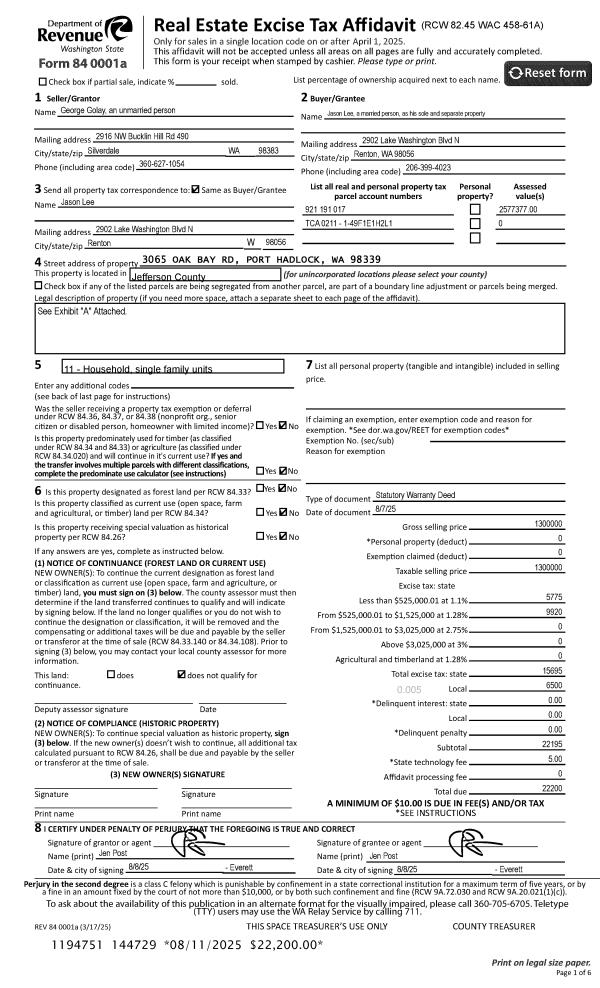 | Mailing Address: | 363 CHASE RD PORT TOWNSEND, WA 98368-8855 | % Ownership: | 100.0000000000% |