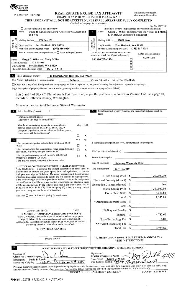 | Mailing Address: | 718 F ST PORT TOWNSEND, WA 98368-5211 | % Ownership: | 100.0000000000% |