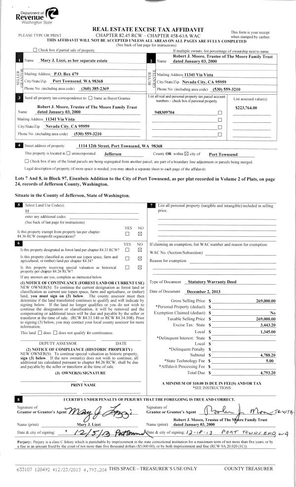 | Mailing Address: | JANE T & MICHAEL L HOGUE TRUSTEES 113 VANCOUVER LN PORT TOWNSEND, WA 97124-9122 | % Ownership: | 100.0000000000% |