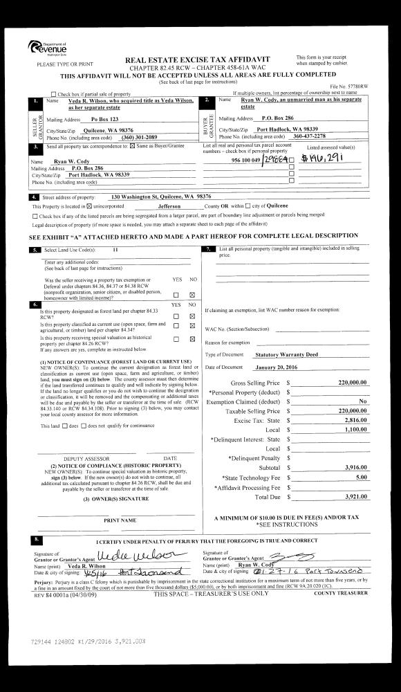 | Mailing Address: | 111 BAYVIEW LN PORT TOWNSEND, WA 98368-9820 | % Ownership: | 100.0000000000% |