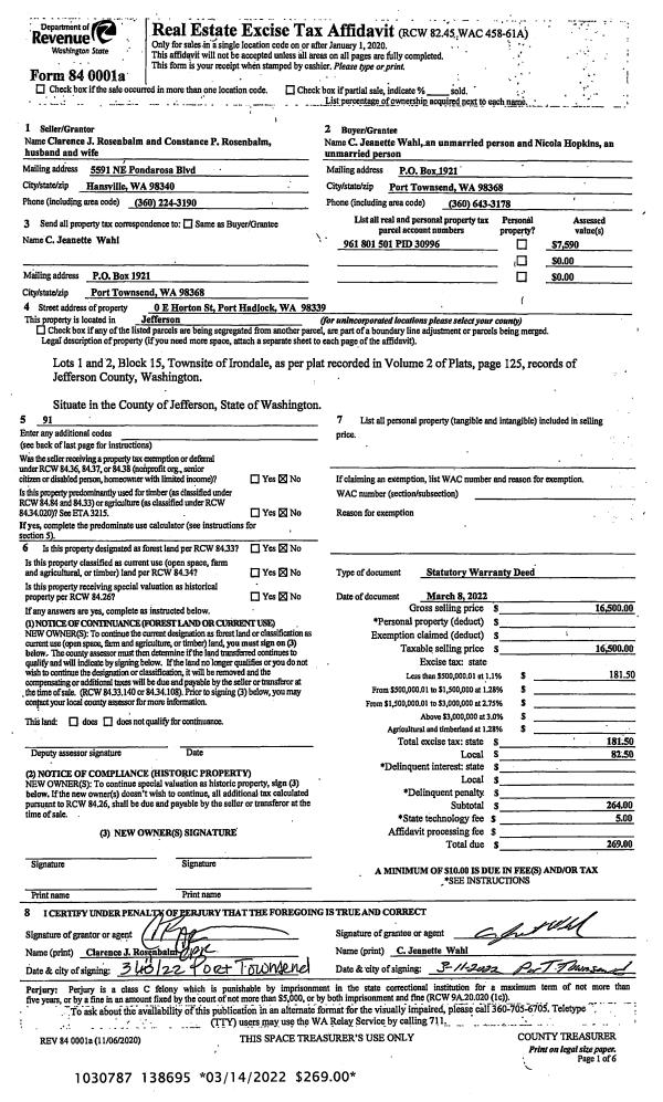 | 3 | 11/28/2022 | SWD | Statutory Warranty Deed | SUSAN M HAZARD | SALLIE HARRISON & DOUG BENECKE | | | $485,000.00 | 140264 | |
