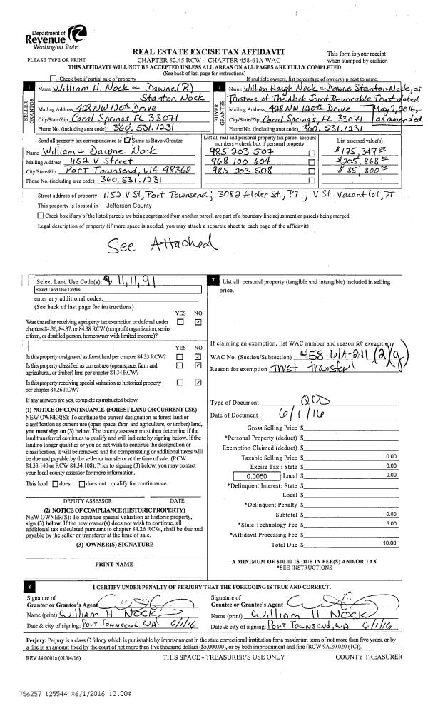 | 3 | 12/13/2016 | QCD | Quit Claim Deed | JAMES S DUNCAN TRUSTEE | QUAIL RUN WASHINGTON INVESTMENTS LLC | | | | 126794 | |