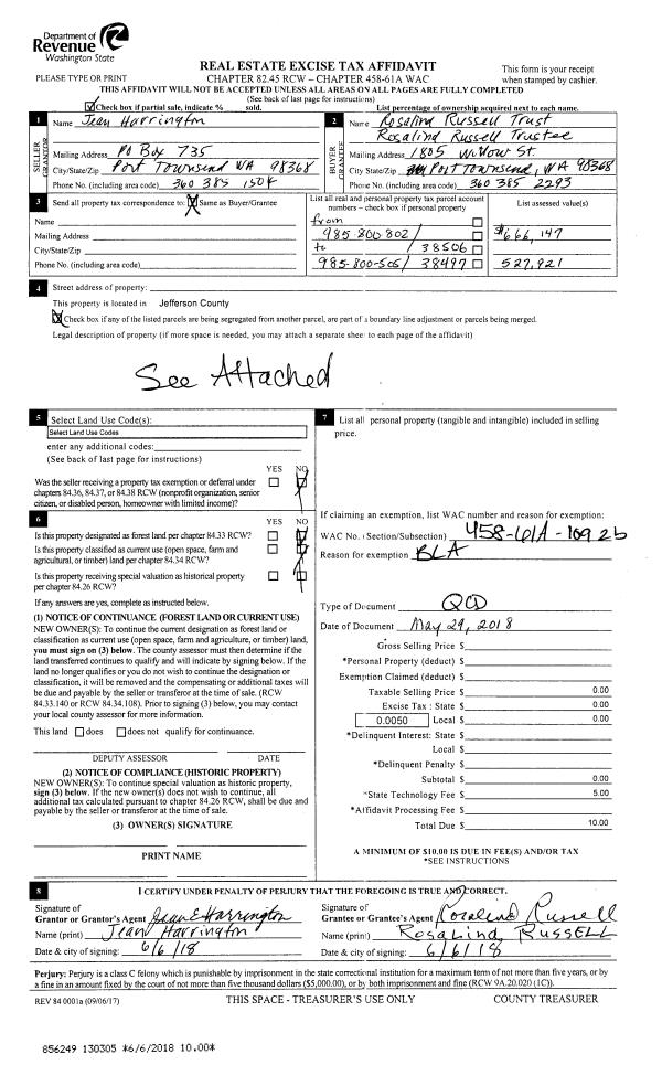 | Mailing Address: | 4260 GISE ST PORT TOWNSEND, WA 98368-1534 | % Ownership: | 100.0000000000% |