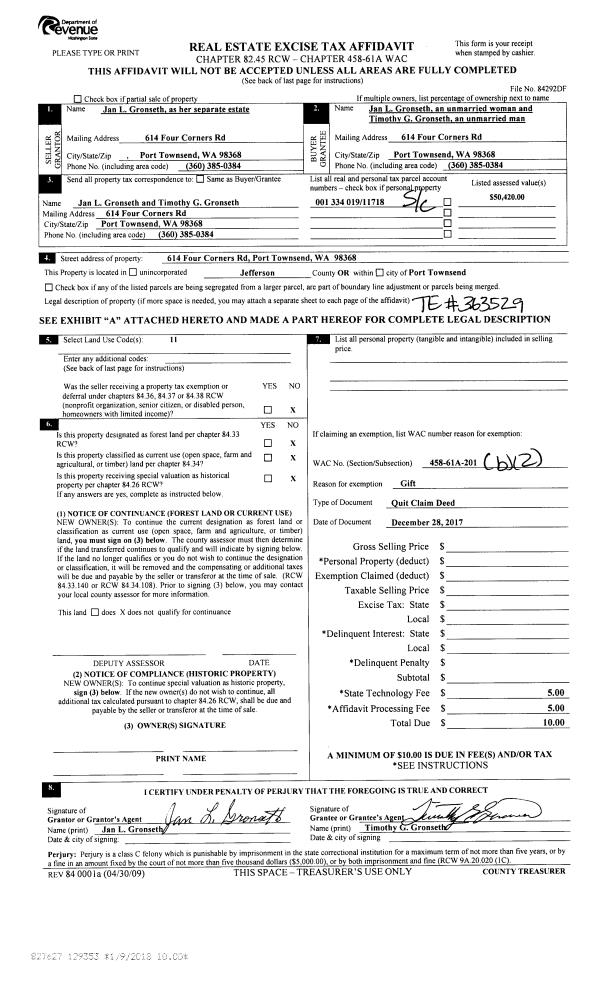 | Mailing Address: | DOUGLAS D PIERCE TRUSTEE 1507 UMATILLA AVE PORT TOWNSEND, WA 98368-4849 | % Ownership: | 100.0000000000% |