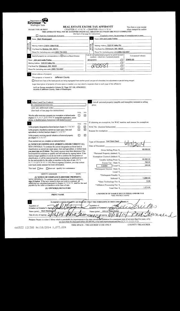 | 1 | 01/07/2015 | SWD | Statutory Warranty Deed | DANIEL D YESBERGER | PT HOMESTEAD LLC | | | $0.00 | 122518 | |