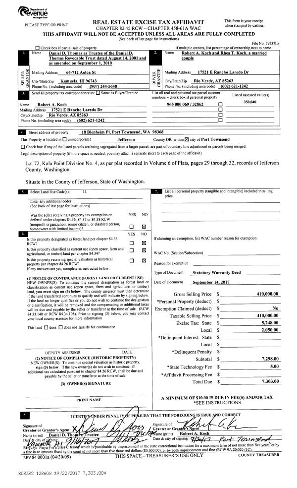 | Mailing Address: | 3130 SHERIDAN ST PORT TOWNSEND, WA 98368-4813 | % Ownership: | 100.0000000000% |