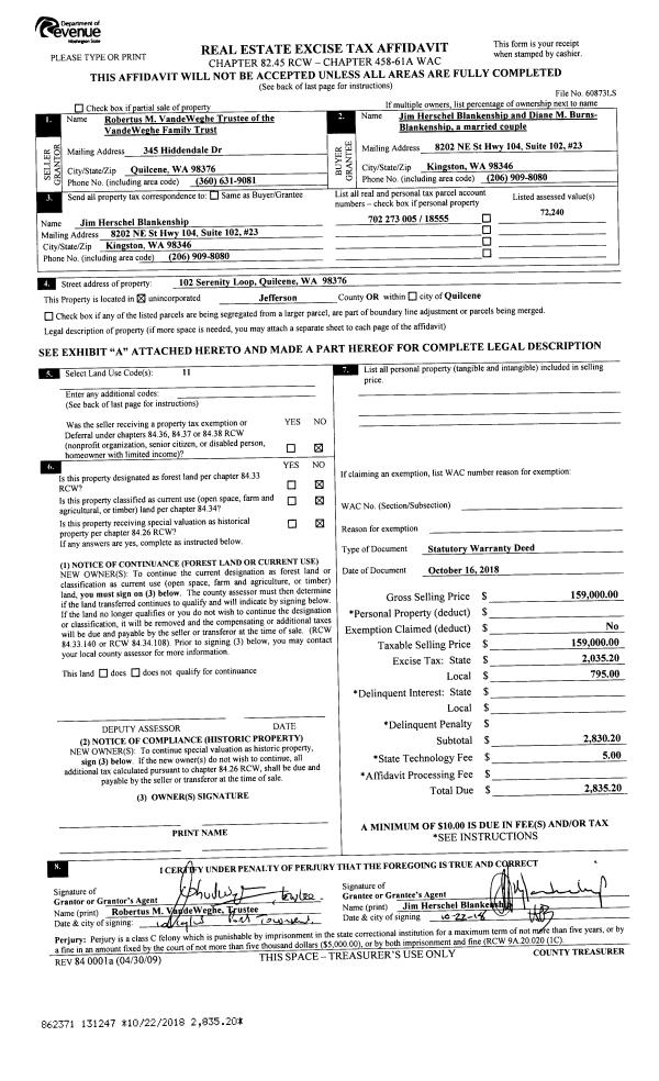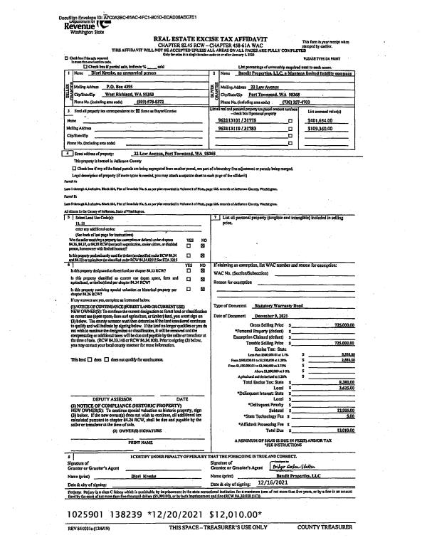 | Mailing Address: | 2929 ALDER ST PORT TOWNSEND, WA 98368-6150 | % Ownership: | 100.0000000000% |