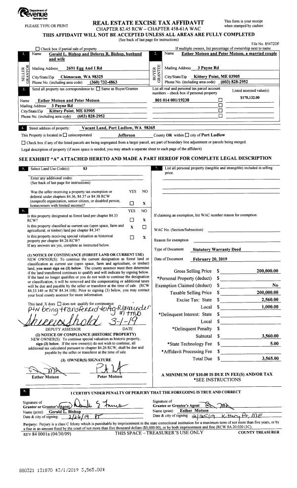 | Mailing Address: | JEAN BALDWIN 1123 31ST ST PORT TOWNSEND, WA 98368-4912 | % Ownership: | 100.0000000000% |