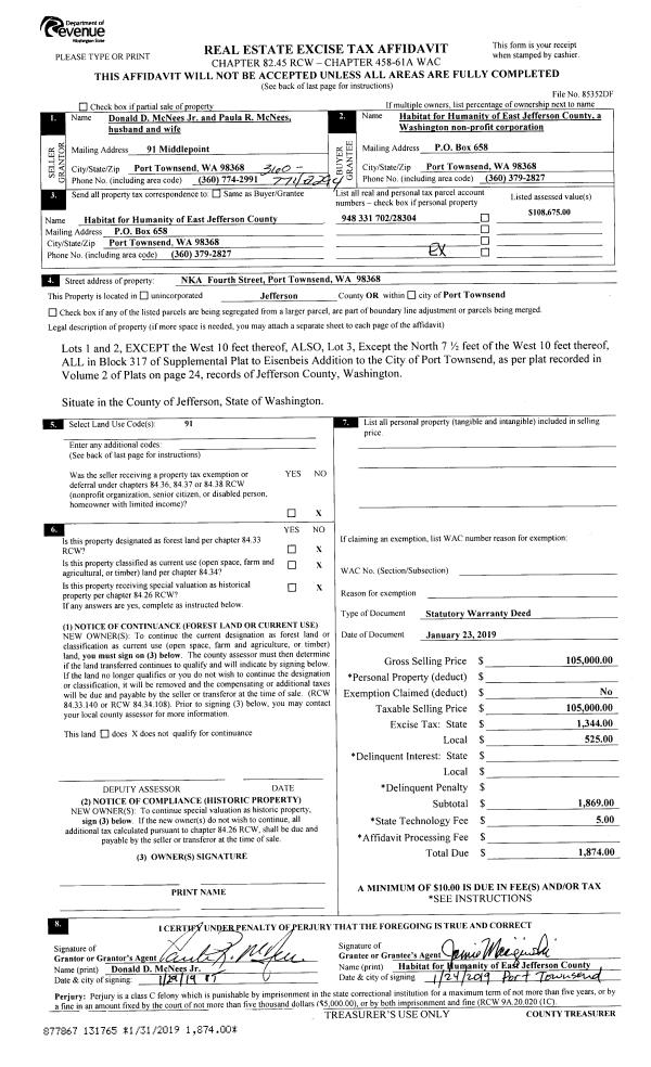 | 2 | 01/09/2018 | SWD | Statutory Warranty Deed | US BANK NATIONAL ASSOCIATION | FEDERAL NATIONAL MORTGAGE ASSOC | | | | 129785 | |