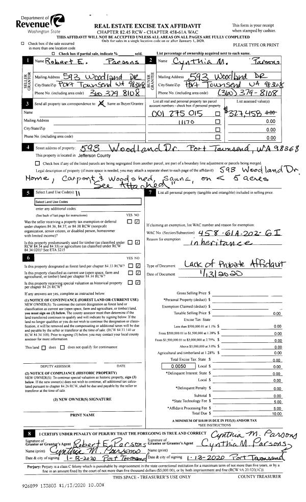 | 1 | 09/16/2020 | SWD | Statutory Warranty Deed | NANCY B FITCH | MARCIA L GROTHE | | | $275,000.00 | 135158 | |