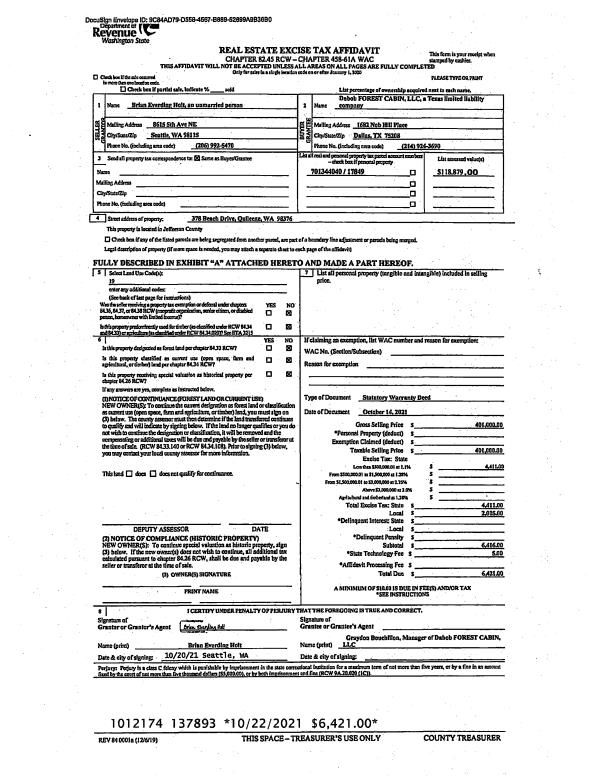 | Mailing Address: | 521 TAYLOR ST PORT TOWNSEND, WA 98368-5828 | % Ownership: | 100.0000000000% |