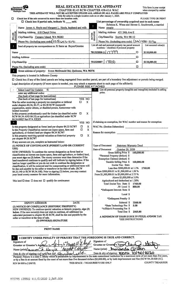 | Mailing Address: | 1240 W SIMS WAY # 319 PORT TOWNSEND, WA 98368-3058 | % Ownership: | 100.0000000000% |