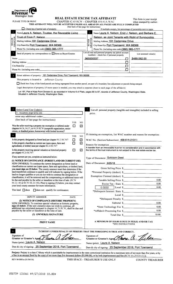 | Mailing Address: | ANN S RAAB 606 ROOSEVELT ST PORT TOWNSEND, WA 98368-5419 | % Ownership: | 100.0000000000% |