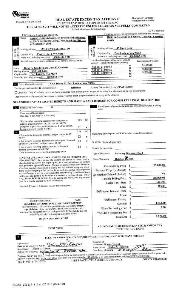 | 1 | 08/08/2024 | SWD | Statutory Warranty Deed | VERONICA & ERIC STORM | ERIC & VERONICA STORM REVOCABLE LIVING TRUST | | | | 143014 | |