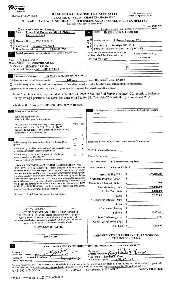 | 1 | 10/18/2017 | SWD | Statutory Warranty Deed | REAL TRST IRA ALTERNATIVES LLC | GLEN H FAXON | | | $230,000.00 | 128860 | |