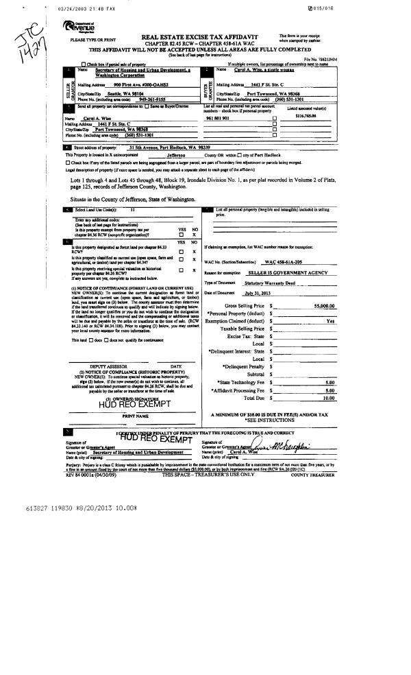 | Mailing Address: | TOM ZMOLEK 514 19TH ST PORT TOWNSEND, WA 98368-6007 | % Ownership: | 100.0000000000% |
