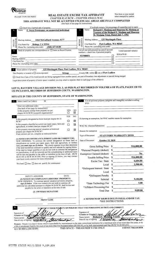 | Mailing Address: | 1633 LANDES ST PORT TOWNSEND, WA 98368-8328 | % Ownership: | 100.0000000000% |