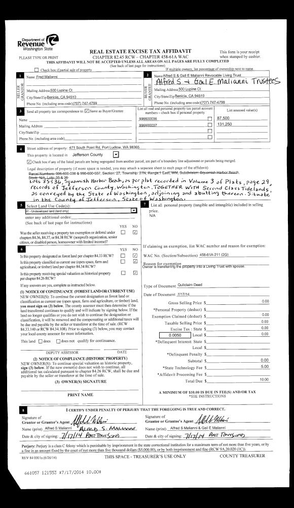 | Mailing Address: | 1432 HILL ST PORT TOWNSEND, WA 98368-8444 | % Ownership: | 100.0000000000% |