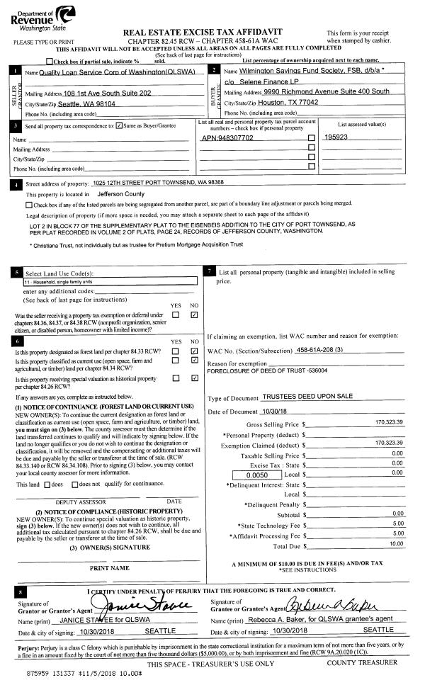 | Mailing Address: | 1335 HILL ST PORT TOWNSEND, WA 98368 | % Ownership: | 100.0000000000% |