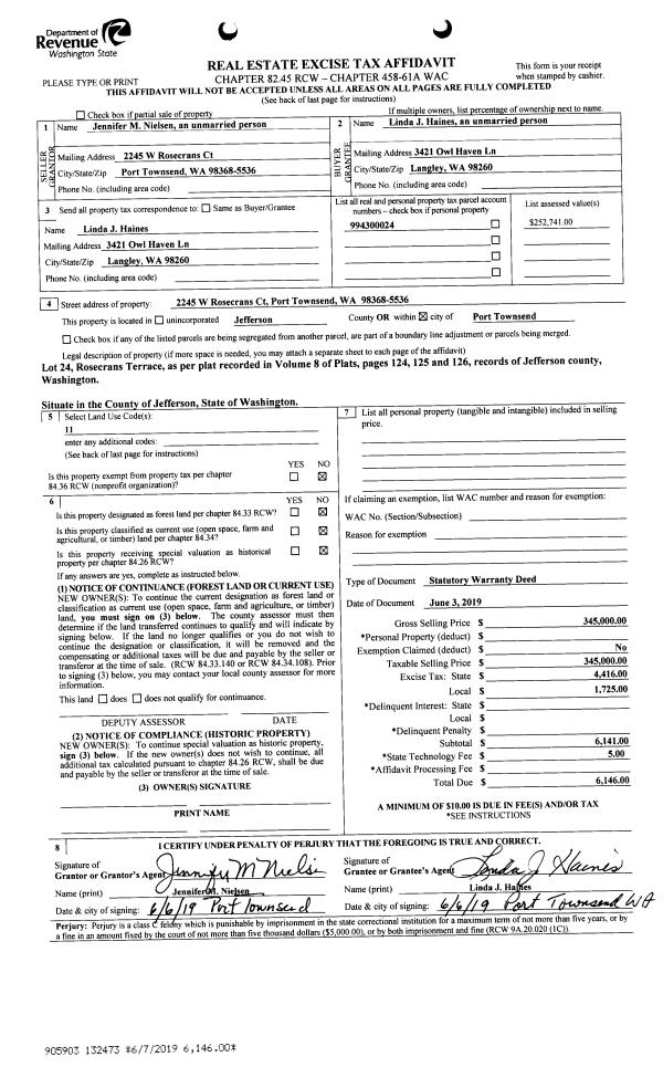 | Mailing Address: | 1533 HILL ST PORT TOWNSEND, WA 98368-8447 | % Ownership: | 100.0000000000% |