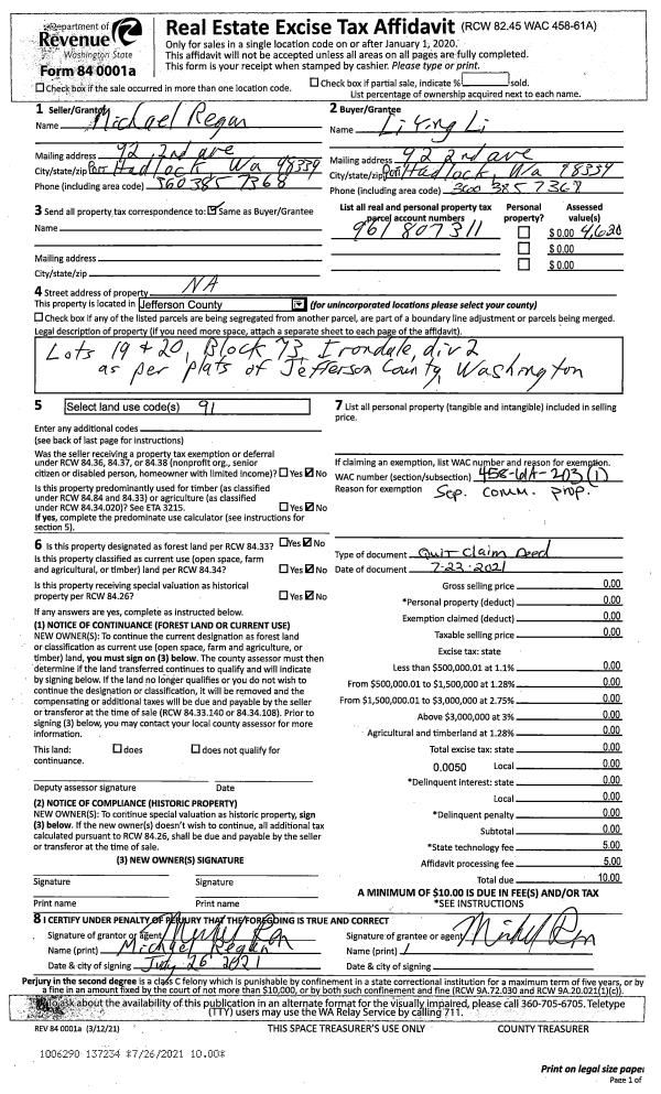 | Mailing Address: | SPENCER TUCKER 681 17TH ST PORT TOWNSEND, WA 98368-6044 | % Ownership: | 100.0000000000% |