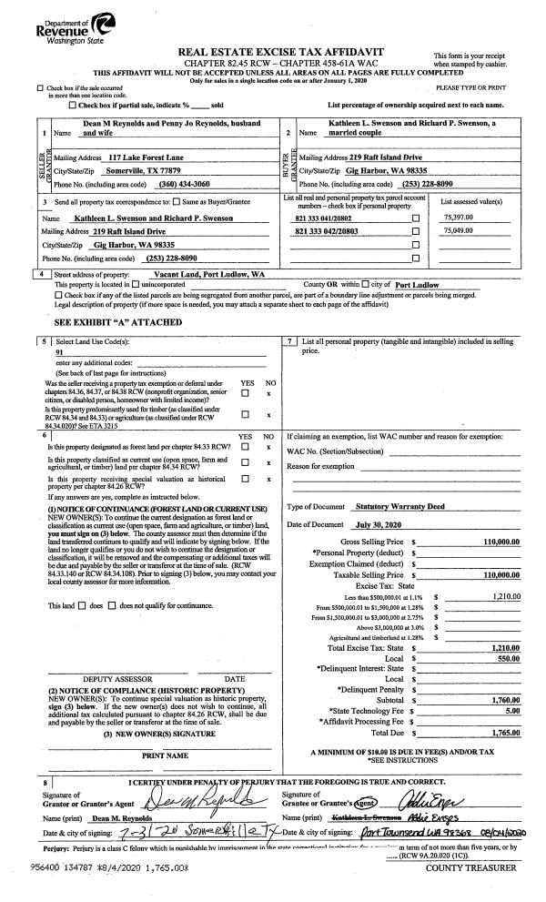 | 3 | 09/09/2002 | SWD | Statutory Warranty Deed | VIVIAN HUBBARD BITTNER | EDWARDS, EDWARD & SUE | 0 | 0 | $100,000.00 | 95516 | 0 |