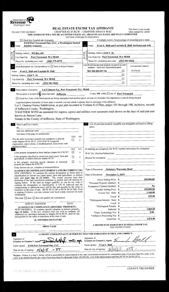 | Mailing Address: | 2010 HOLCOMB ST PORT TOWNSEND, WA 98368-7704 | % Ownership: | 100.0000000000% |