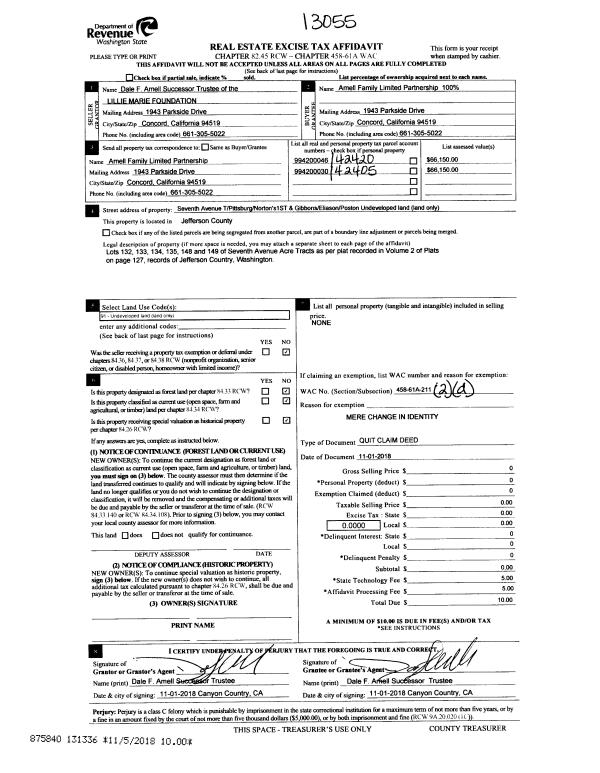 | Mailing Address: | 1393 JACKMAN ST PORT TOWNSEND, WA 98368-8400 | % Ownership: | 100.0000000000% |