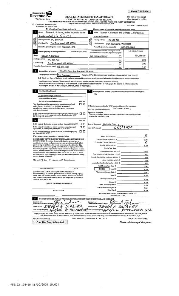 | Mailing Address: | 1125 19TH ST PORT TOWNSEND, WA 98368-7606 | % Ownership: | 100.0000000000% |