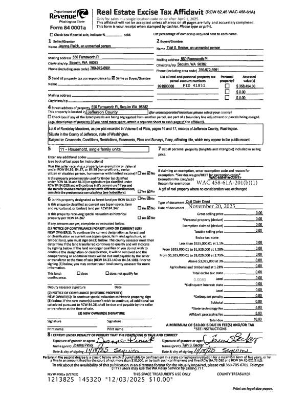 | Mailing Address: | 2102 WILSON ST PORT TOWNSEND, WA 98368 | % Ownership: | 100.0000000000% |