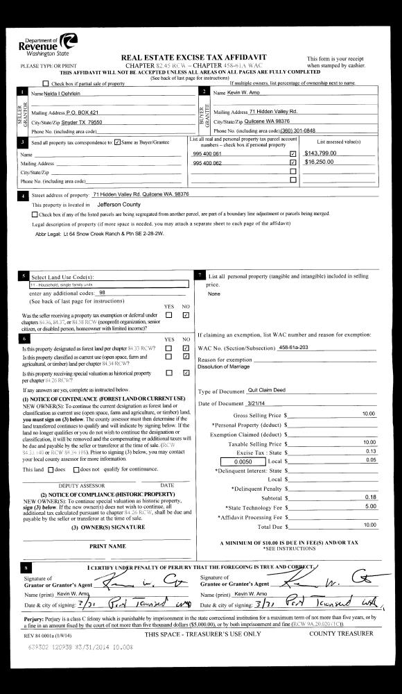 | 1 | 10/24/2014 | QCD | Quit Claim Deed | JOHN V/LISA M PEDERSEN ETAL | KIRIE C PEDERSEN | | | $0.00 | 122416 | |