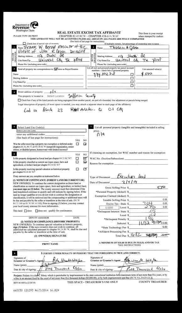 | Property ID: | 275628 | Abbreviated Legal Description: | ORCA SHORT PLAT LOT 2 & TL TAX C-2 SUBJ/EASE 50% INT |