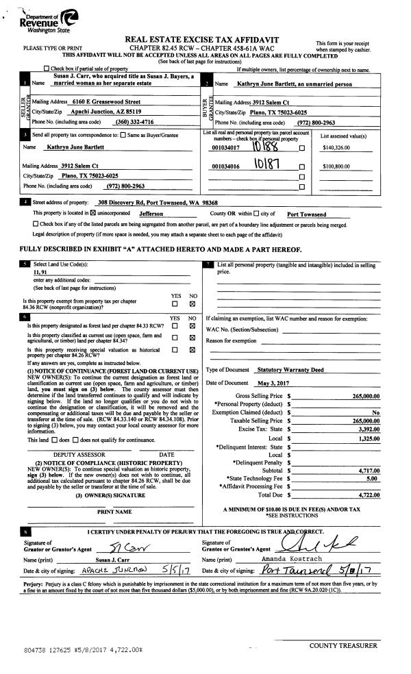 | 1 | 08/01/2017 | WD | Warranty Deed | LINDA J CARSON | ANDREW CARSON & MELISSA LOVE | | | $125,000.00 | 128369 | |