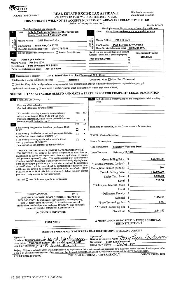 | 4 | 06/27/2007 | SWD | Statutory Warranty Deed | ZAMPERIN, ANGELO/WALTRAUD | HABITAT FOR HUMANITY/EAST J C | | | $300,000.00 | 109521 | 0 |
