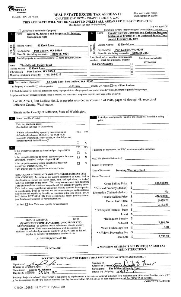 | 2 | 08/21/2018 | SWD | Statutory Warranty Deed | PATRICIA BERRY | LLEWELLYN W BEZANSON | | | $285,000.00 | 130885 | |
