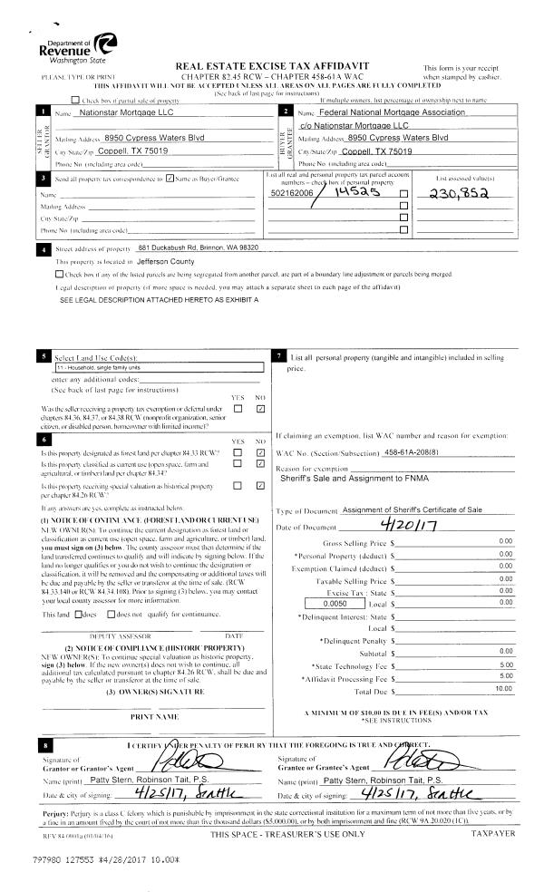 | 1 | 09/06/2017 | SWD | Statutory Warranty Deed | CAFS LLC | BARBARA E WALLS | | | $265,500.00 | 128494 | |