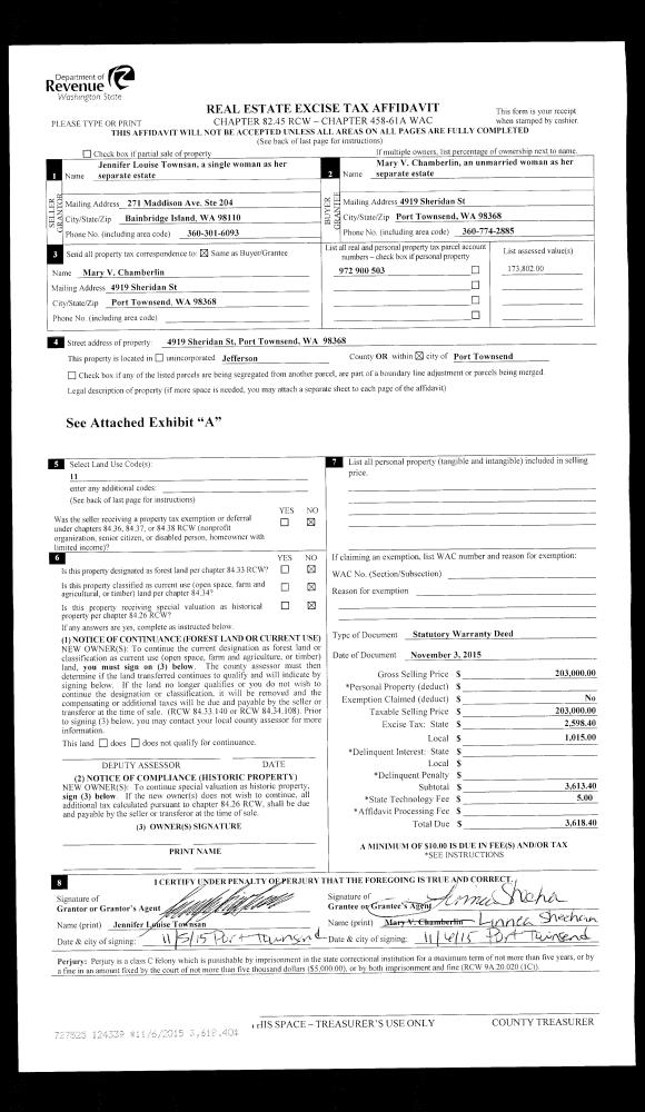 | Mailing Address: | 2204 E ROSECRANS CT PORT TOWNSEND, WA 98368-6866 | % Ownership: | 100.0000000000% |