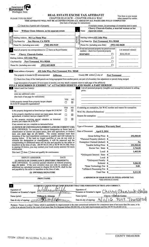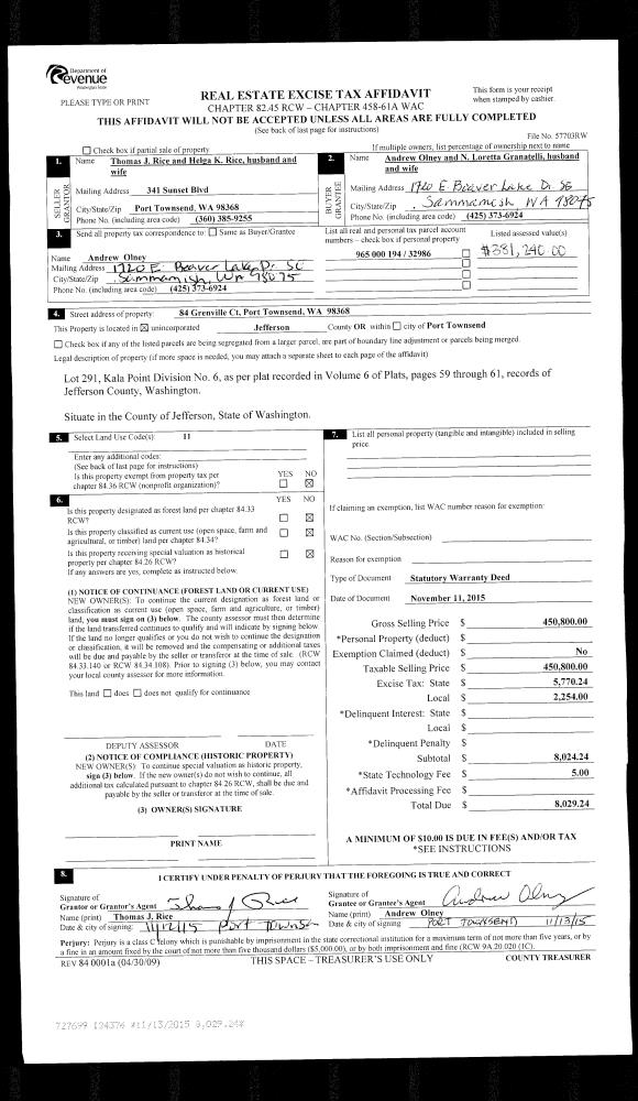 | Mailing Address: | 2217 E ROSECRANS CT PORT TOWNSEND, WA 98368-6866 | % Ownership: | 100.0000000000% |