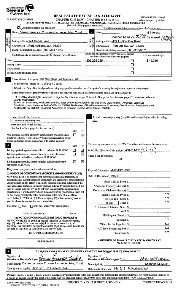 | 3 | 10/30/2006 | QCD | Quit Claim Deed | PICK MINERALES, LLC, A WA | ST FRANCIS ESTATES, LLC | 0 | 0 | $0.00 | 0 | 0 |