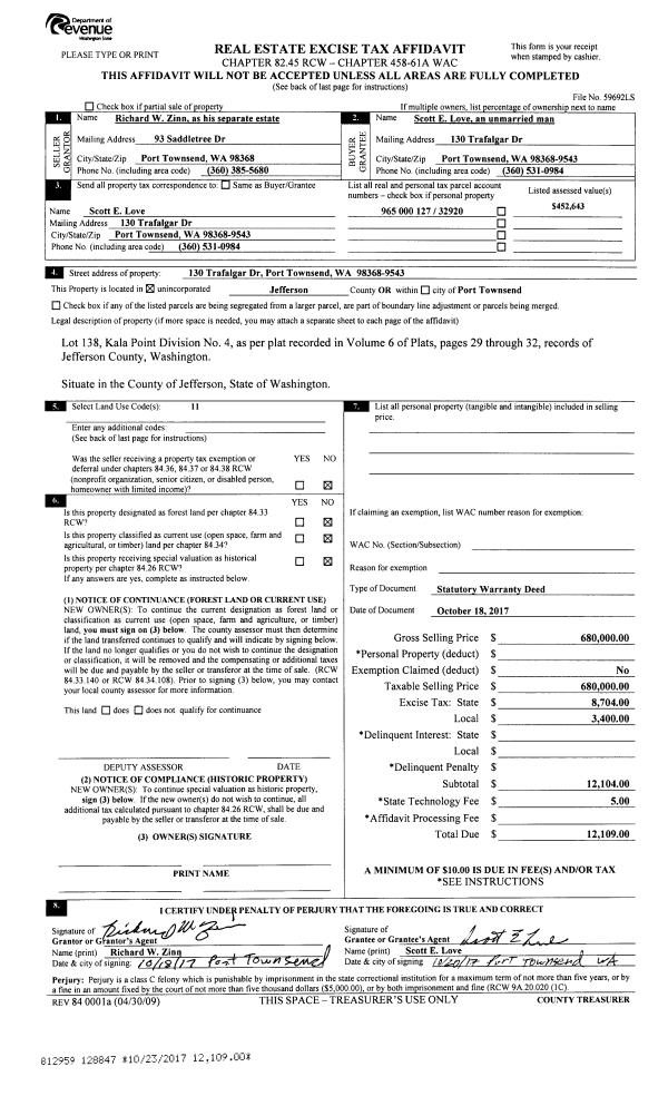 | 1 | 06/28/2018 | SWD | Statutory Warranty Deed | GIOVANNI VIGNALE | HAILIAN ZHOU | | | $288,500.00 | 130478 | |