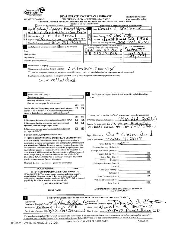 | Mailing Address: | 1725 31ST ST PORT TOWNSEND, WA 98368-4825 | % Ownership: | 100.0000000000% |