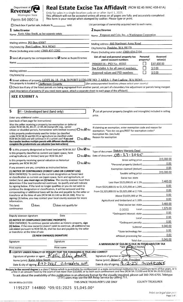 | Mailing Address: | 629 QUINCY ST PORT TOWNSEND, WA 98368-5522 | % Ownership: | 100.0000000000% |